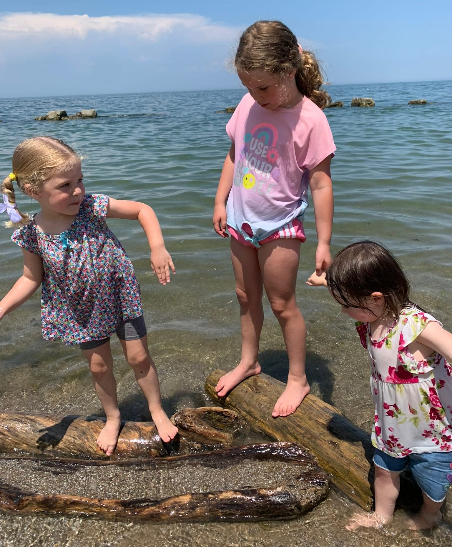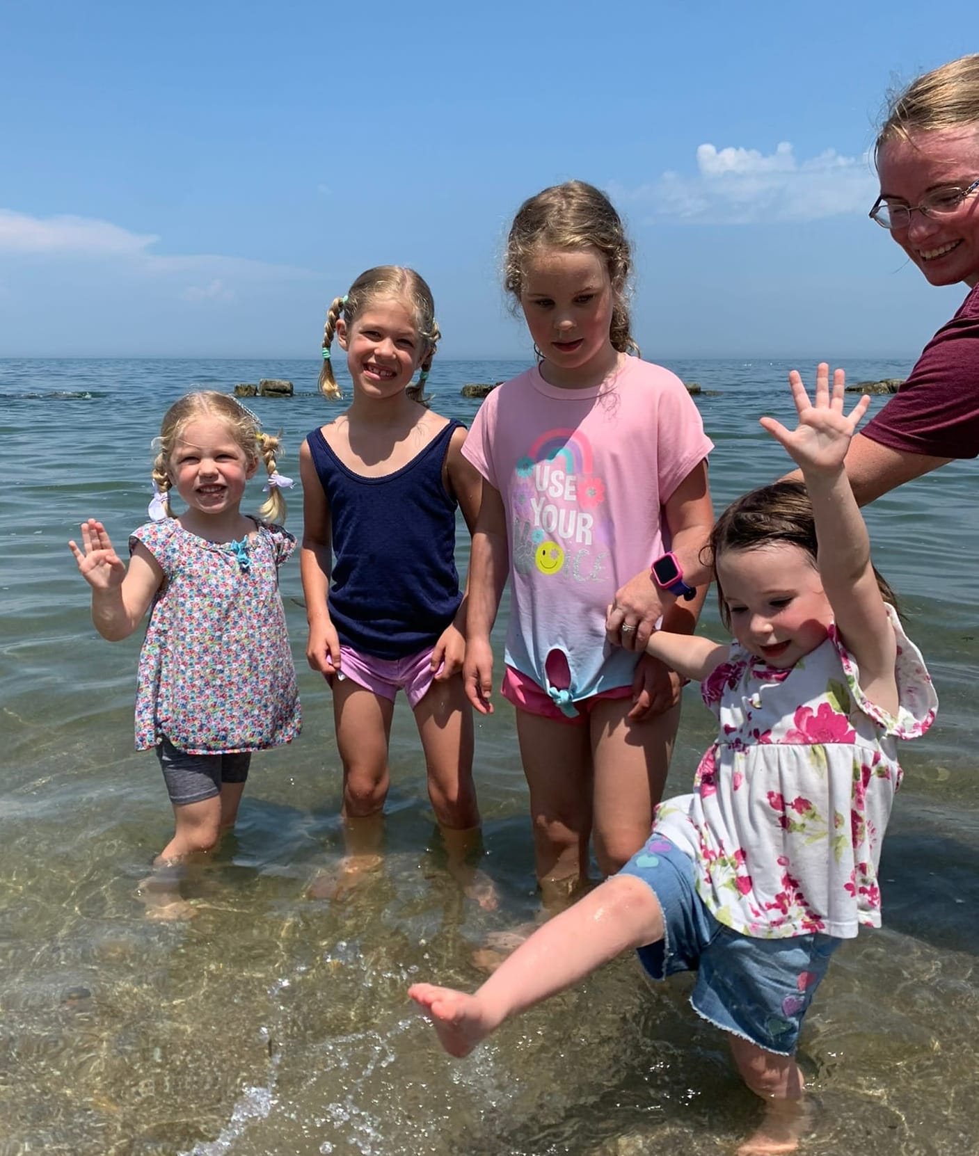 Finally, Maureen and I got together with her friend, Heidi for a picnic lunch and some beach play on Friday after VBS. This play-date warmed my heart so much because Heidi's big sister, Hannah and cousin, Isla were also present, and both girls made it their responsibility to include and help Maureen as much as possible. I loved seeing Hannah and her cousin play big sisters to Maureen, and getting to catch up a little with Hannah and Heidi's mom, Laura, whom I hadn't seen in a while. I have a few pictures from this play-date that I'll include below.